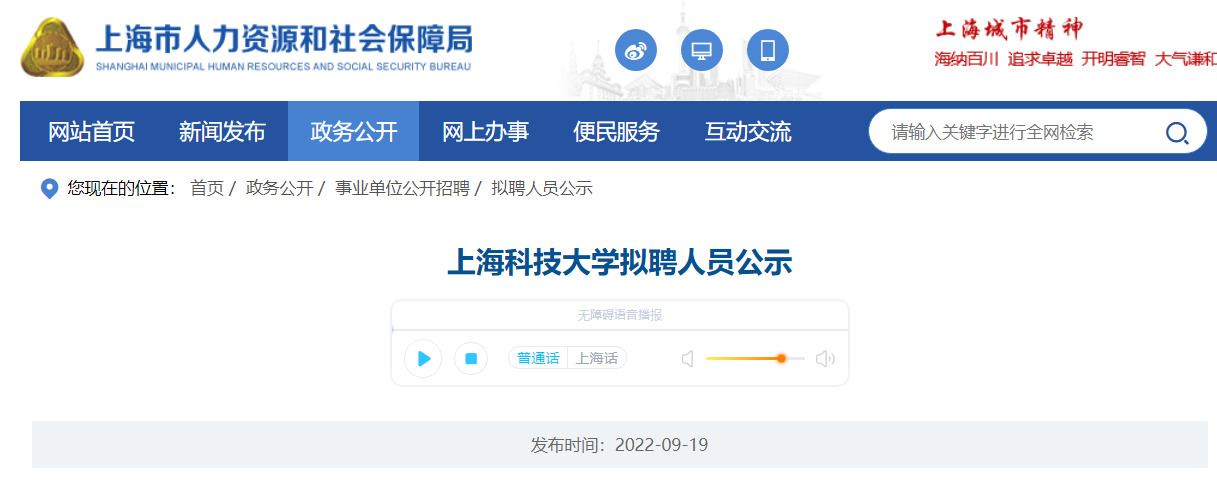 2022上??萍即髮W(xué)擬聘人員公示已發(fā)布,公示時(shí)間:2022年09月19日—2022年09月26日,現(xiàn)將原文發(fā)布如下: