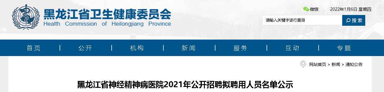 2021黑龍江省神經(jīng)精神病醫(yī)院招聘擬聘用人員名單公示已出,公示時(shí)間:2022年1月6日至2022年1月12日,現(xiàn)將招聘公示原文發(fā)布如下: