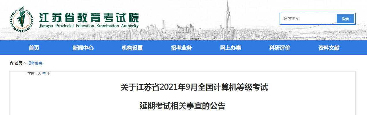受新冠肺炎疫情影響,原定2021年9月25日至27日舉行的江蘇省全國計算機(jī)等級考試(NCRE)延期至12月4日至6日舉行?,F(xiàn)就延期考試相關(guān)事宜公告如下: