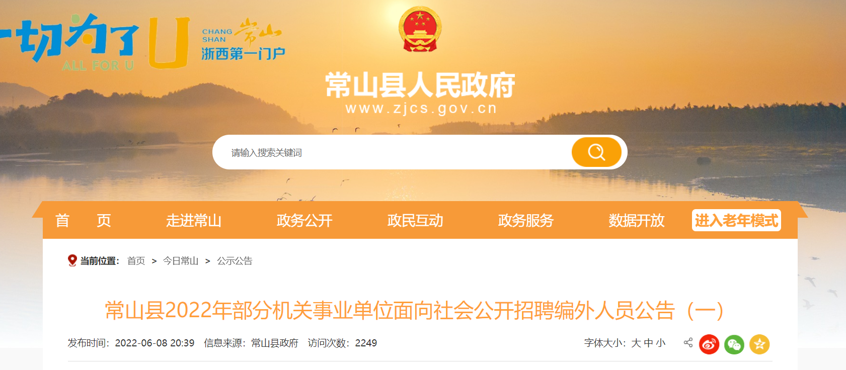 2022年6月8日通過常山縣政府網(wǎng)對外發(fā)布招考信息。