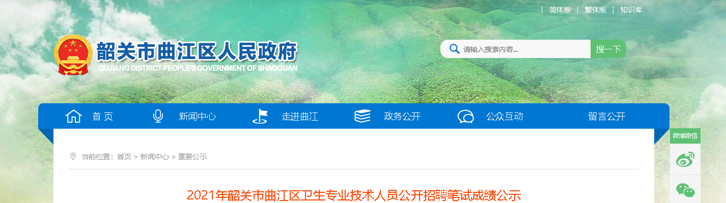 2021年韶關(guān)市曲江區(qū)衛(wèi)生專業(yè)技術(shù)人員公開招聘筆試成績(jī)及進(jìn)入面試人員名單