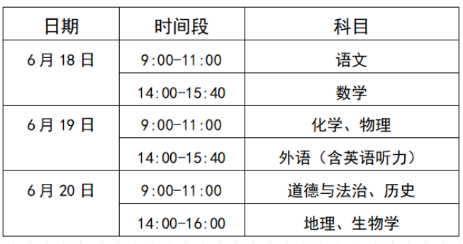 其中,九年級(jí)考生須參加語(yǔ)文、數(shù)學(xué)、外語(yǔ)(含英語(yǔ)聽(tīng)力)、化學(xué)、物理、道德與法治、歷史7個(gè)科目的考試;八年級(jí)考生須參加6月20日下午進(jìn)行的地理、生物學(xué)科目的考試。