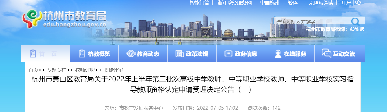 從杭州市教育局獲悉,2022年上半年第二批次浙江杭州市蕭山區(qū)教師資格認定申請受理決定公告已公布,請相關人員仔細閱讀,具體詳情如下: