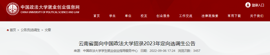 原文標(biāo)題:云南省面向中國(guó)政法大學(xué)招錄2023年定向選調(diào)生公告