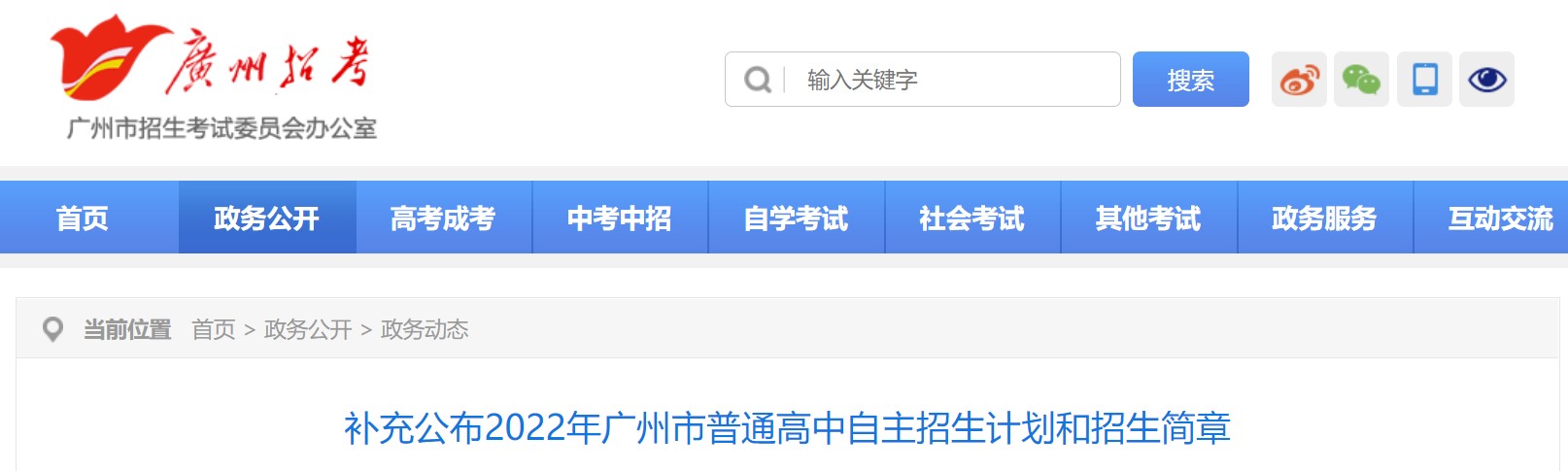 2022年廣東廣州普通高中自主招生計(jì)劃和招生簡(jiǎn)章補(bǔ)充公告已公布,相關(guān)考生可登錄廣州市招生考試委員會(huì)辦公室(http://gzzk.gz.gov.cn/),或直接點(diǎn)擊下方鏈接進(jìn)行查看。