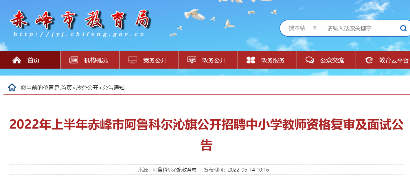 2022年上半年內(nèi)蒙古赤峰市阿魯科爾沁旗公開招聘中小學(xué)教師資格復(fù)審及面試公告已發(fā)布,現(xiàn)將原文發(fā)布如下: