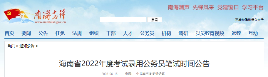 根據(jù)工作安排,海南省2022年度考試錄用公務(wù)員筆試時(shí)間定于2022年7月9日、10日。報(bào)考人員請于2022年7月4日9:00后,登錄海南省考試錄用公務(wù)員網(wǎng)上報(bào)名系統(tǒng)打印準(zhǔn)考證。