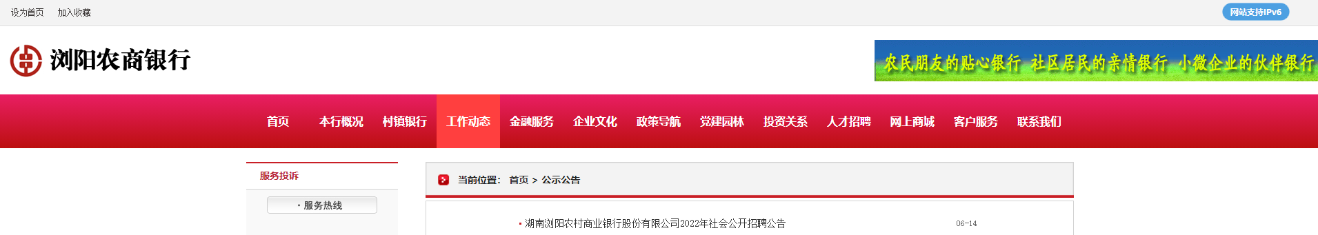 5.公告中未盡事宜和需對(duì)外發(fā)布的招聘信息,將在瀏陽農(nóng)商銀行上公布,不另行通知。