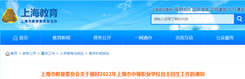 自主招生頻道從上海市教育委員會(huì)了解到,關(guān)于做好2022年上海市中等職業(yè)學(xué)校自主招生工作的通知已發(fā)布,詳情如下: