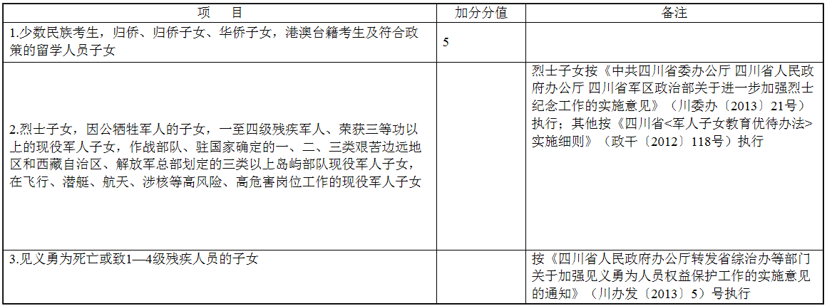 加分由德陽市教育局認定并計入學生考試總成績,加分(降分)政策只能享受分一種。中考加分(降分)學生名單將在德陽教育網(wǎng)和德陽招生考試網(wǎng)上公示。