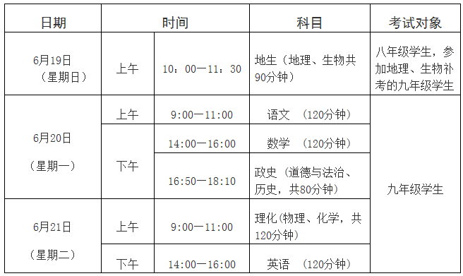 我市2022年中考八年級考試科目及分值為:地理50分、生物50分(地理、生物分科合卷),考試成績計入2023年中考總成績。