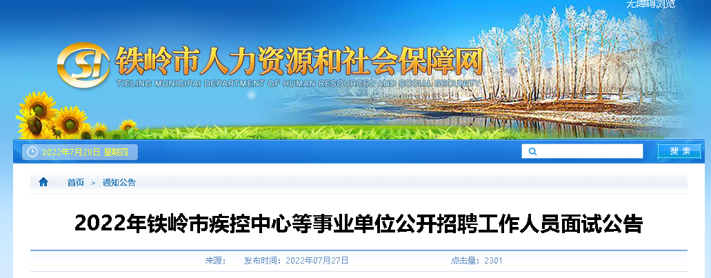 2022遼寧鐵嶺市疾控中心等事業(yè)單位招聘人員面試公告已出,面試時間:2022年8月7日(星期日),現(xiàn)將招聘公告原文發(fā)布如下: