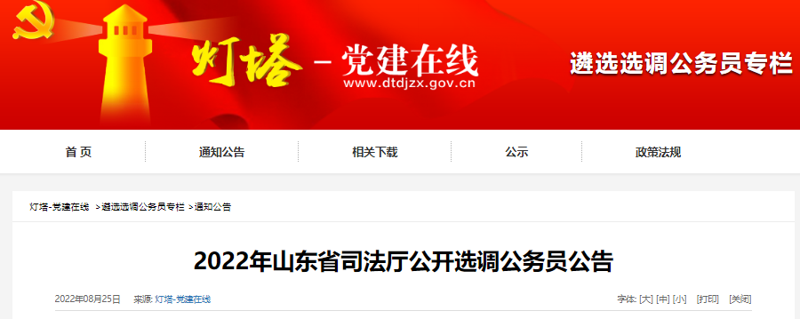 根據(jù)《公務(wù)員法》《黨政領(lǐng)導(dǎo)干部選拔任用工作條例》《公務(wù)員調(diào)任規(guī)定》等有關(guān)規(guī)定,按照省委組織部有關(guān)要求,現(xiàn)將2022年山東省司法廳公開選調(diào)公務(wù)員有關(guān)事項公告如下: