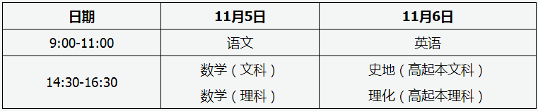 (一)高起??荚嚂r間表