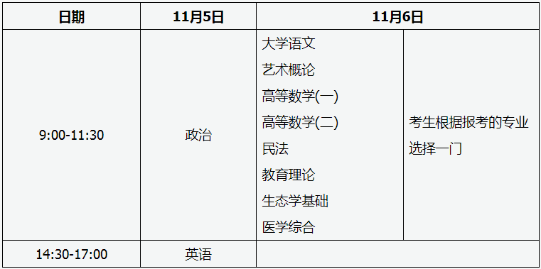 (三)專升本考試時間表