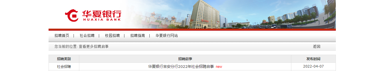 2022華夏銀行江西吉安分行社會(huì)招聘若干人,全年持續(xù)招聘,相關(guān)崗位招滿為止,現(xiàn)將招聘公告原文發(fā)布如下: