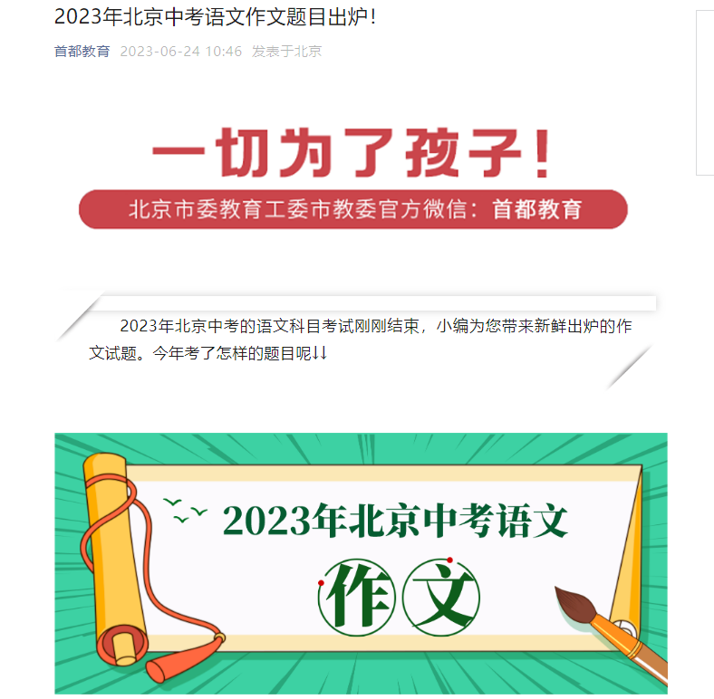 從北京市教育委員會獲悉,2023年北京懷柔中考的語文科目考試已結(jié)束,2023年北京懷柔中考作文題目出爐!以“我讀到的北京”為題或者以“我生活中的一棵樹”為題寫一篇作文,具體詳情如下: