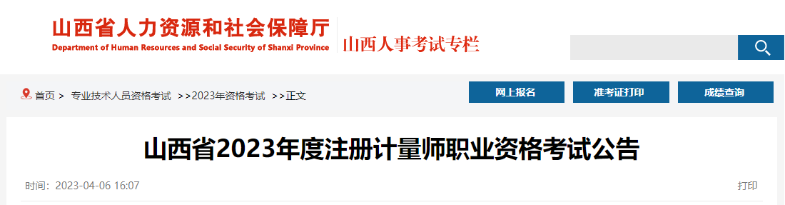 根據(jù)《山西省人事考試中心關(guān)于做好山西省2023年度注冊計量師職業(yè)資格考試考務(wù)工作的通知》(晉人考函〔2023〕7號)安排,現(xiàn)將有關(guān)事項公告如下: