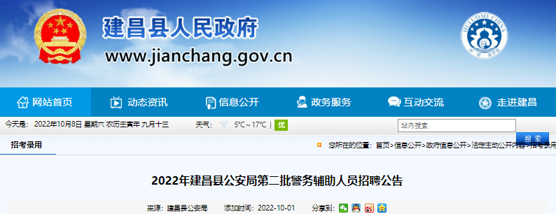 原文標(biāo)題:2022年建昌縣公安局第二批警務(wù)輔助人員招聘公告