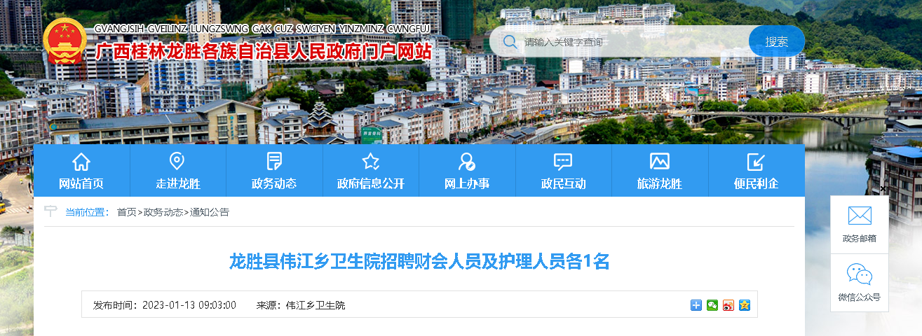 2022廣西桂林市龍勝縣偉江鄉(xiāng)衛(wèi)生院招聘財會人員及護理人員2人,招聘工作按照報名、資格審核、面試、試用等程序進行,現(xiàn)將招聘公告原文發(fā)布如下: