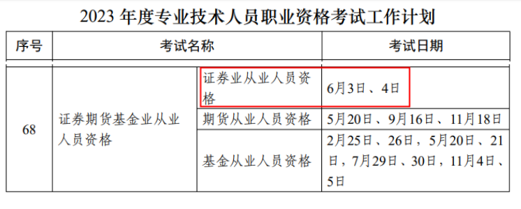 小編根據(jù)人力資源社會保障部辦公廳發(fā)布“關(guān)于2023年度專業(yè)技術(shù)人員職業(yè)資格考試計(jì)劃及有關(guān)事項(xiàng)的通知”得知,2023年證券業(yè)從業(yè)人員資格考試時間為6月3日-4日,考試科目《證券市場基本法律法規(guī)》和《金融市場基礎(chǔ)知識》。