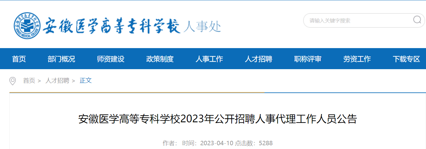原文標(biāo)題:安徽醫(yī)學(xué)高等專(zhuān)科學(xué)校2023年公開(kāi)招聘人事代理工作人員公告