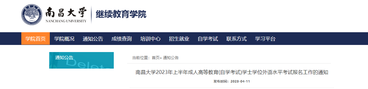 原文標(biāo)題:南昌大學(xué)2023年上半年成人高等教育(自學(xué)考試)學(xué)士學(xué)位外語水平考試報名工作的通知