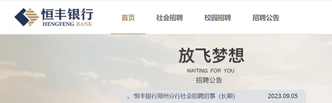 2023年恒豐銀行河南鄭州分行長(zhǎng)期社會(huì)招聘啟事已發(fā)布,報(bào)名時(shí)間:2023年12月31日截止,現(xiàn)將招聘公告發(fā)布如下: