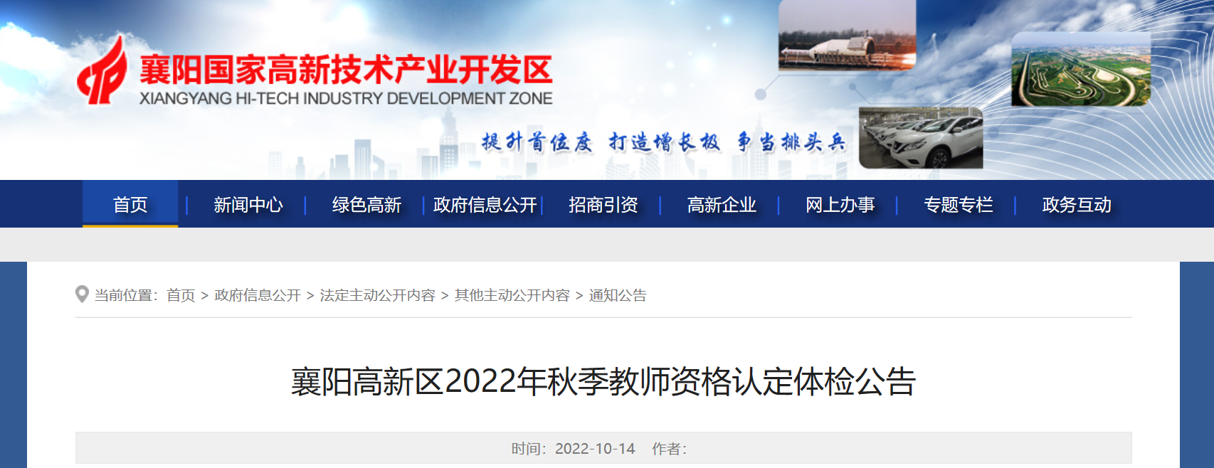 原文標題:襄陽高新區(qū)2022年秋季教師資格認定體檢公告