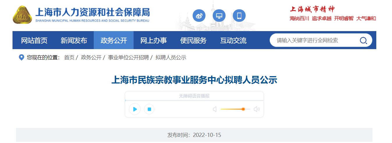 原文標(biāo)題:上海市民族宗教事業(yè)服務(wù)中心擬聘人員公示