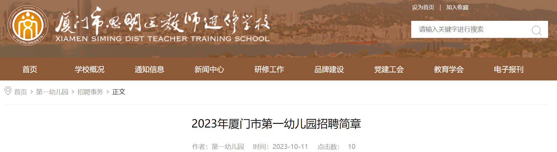 招聘信息發(fā)布在思明區(qū)教師進修學(xué)校網(wǎng)(http://www.xmsmedu.cn/)