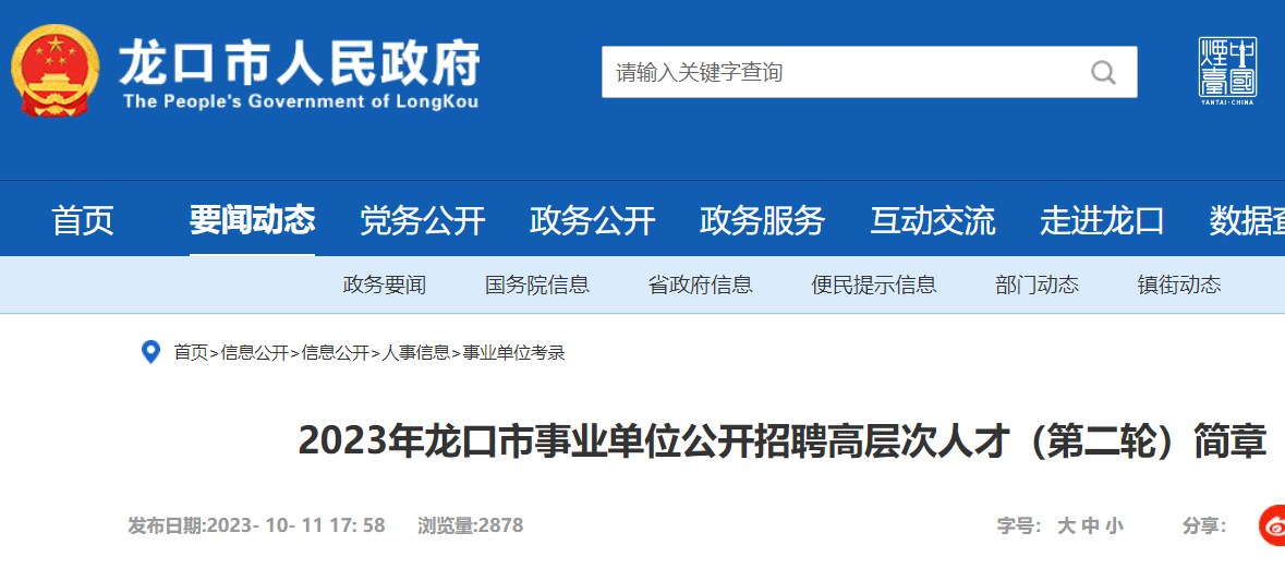 報名、招聘信息公告公示網(wǎng)站:龍口市人民政府網(wǎng)站