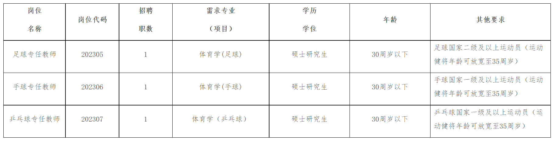 本年度計(jì)劃招聘體育專(zhuān)任教師(人事代理)3名,具體見(jiàn)下表。