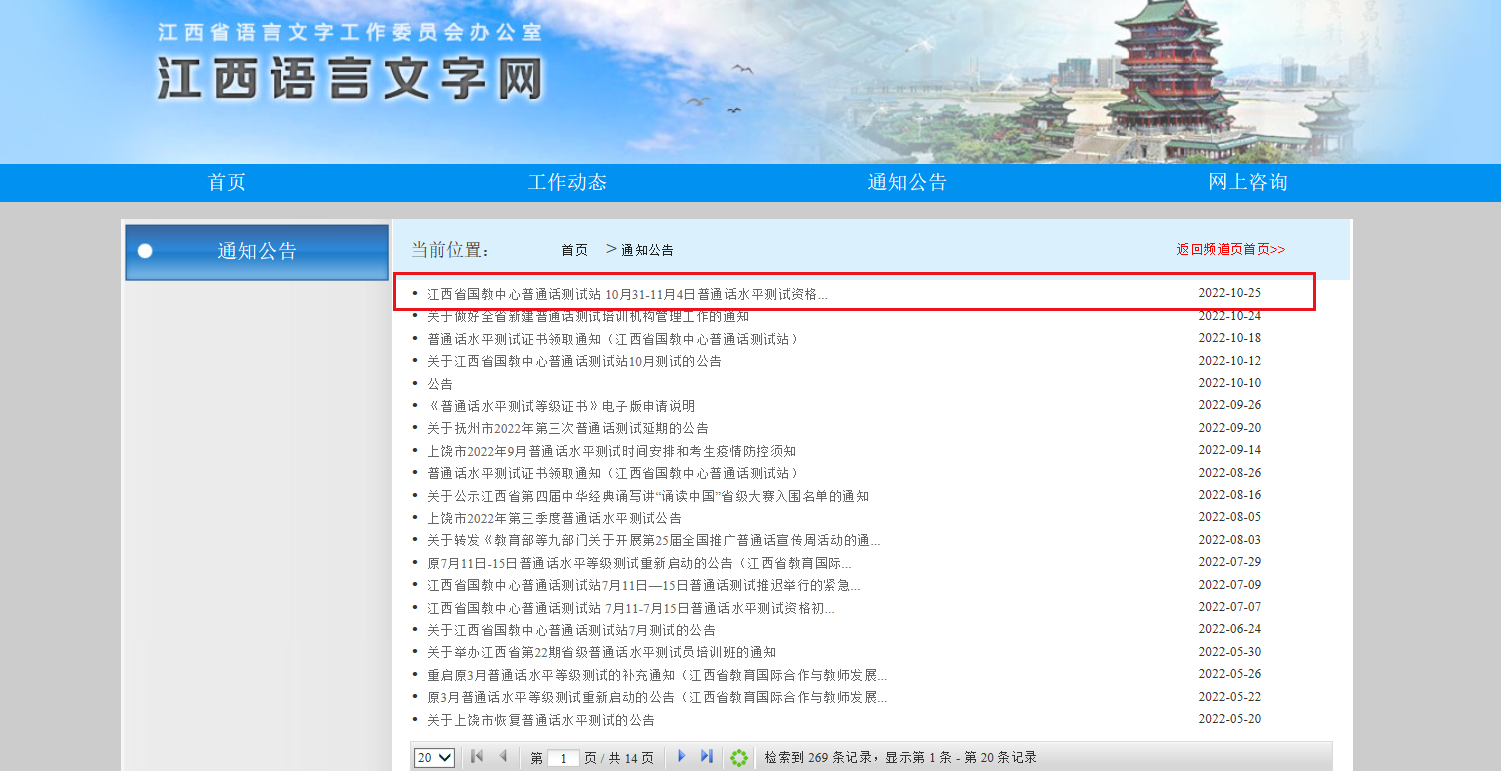 從江西語(yǔ)言文字網(wǎng)獲悉,2022年10月31-11月4日江西國(guó)教中心普通話資格初審結(jié)果及測(cè)試安排已公布,請(qǐng)相關(guān)人員仔細(xì)閱讀,具體詳情如下: