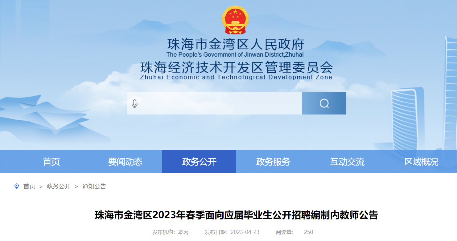 2023春季廣東珠海市金灣區(qū)面向應(yīng)屆畢業(yè)生招聘編制內(nèi)教師報(bào)名入口