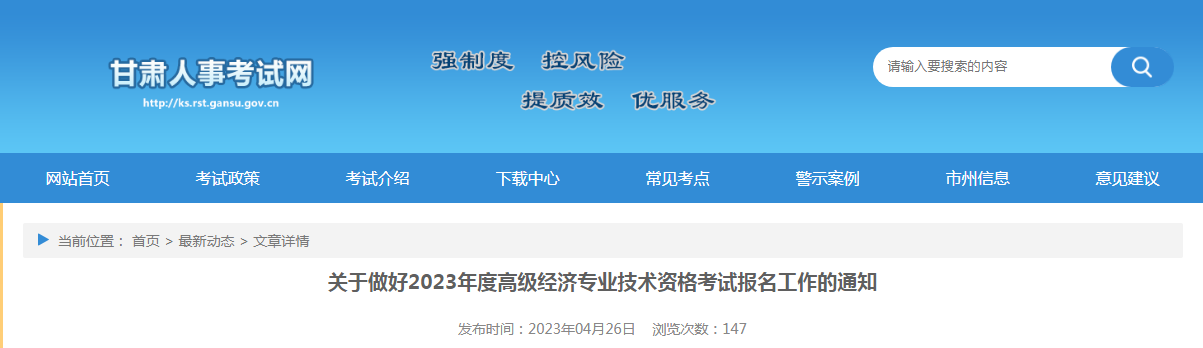 從甘肅人事考試網(wǎng)發(fā)布的“甘肅省2023年度高級(jí)經(jīng)濟(jì)專業(yè)技術(shù)資格考試報(bào)名工作的通知”了解到,2023年甘肅高級(jí)經(jīng)濟(jì)師報(bào)名條件公布,詳細(xì)內(nèi)容如下: