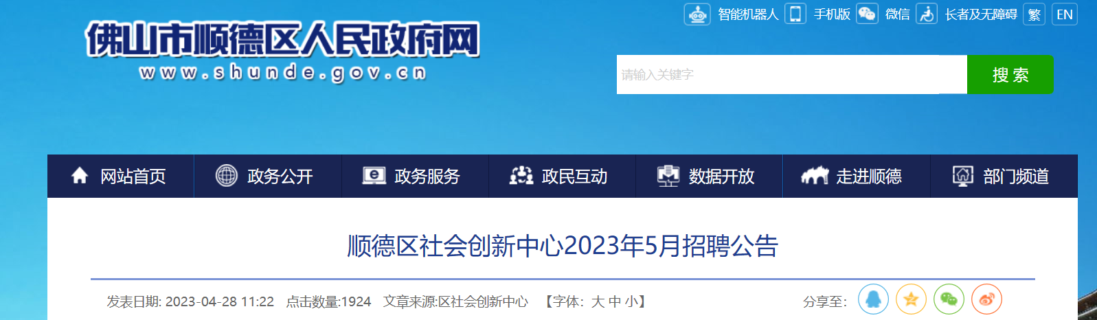 原文標(biāo)題:順德區(qū)社會(huì)創(chuàng)新中心2023年5月招聘公告