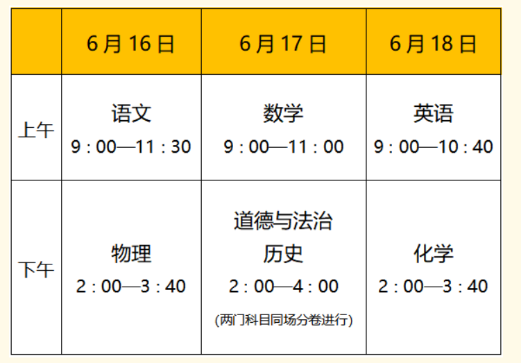 道德與法治和歷史兩門科目采用同場分卷進行。