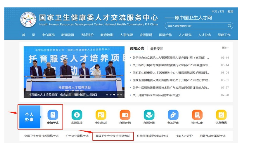 或首頁(yè)—個(gè)人辦事—參加考試—高級(jí)衛(wèi)生專業(yè)技術(shù)資格考試