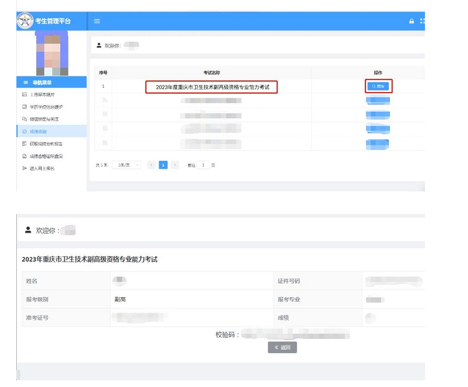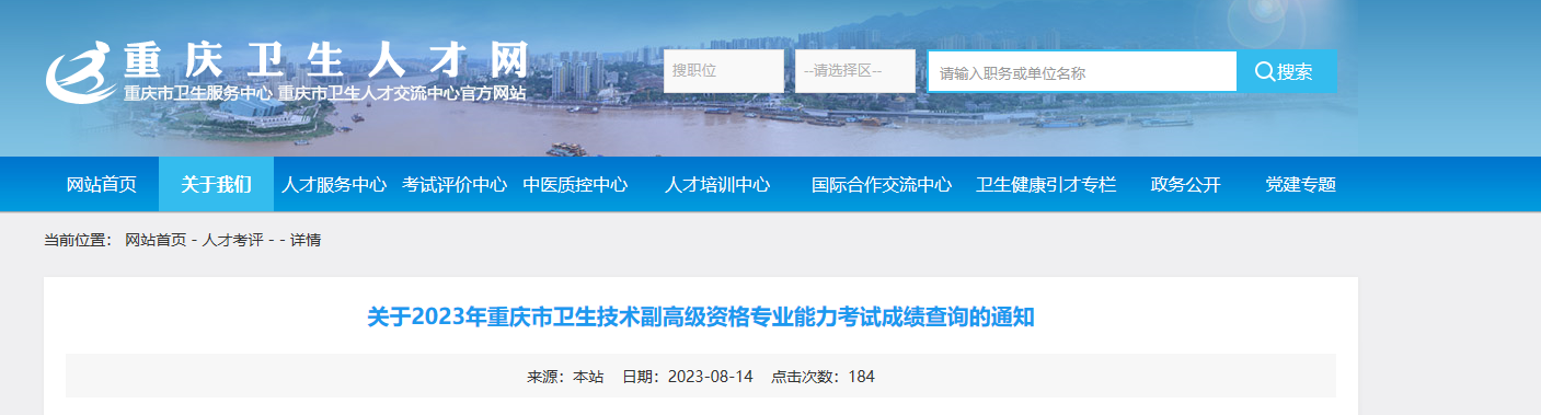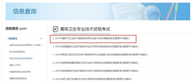 點(diǎn)擊進(jìn)入>>>2023年重慶市衛(wèi)生技術(shù)副高級(jí)資格專業(yè)能力考試成績(jī)查詢網(wǎng)站