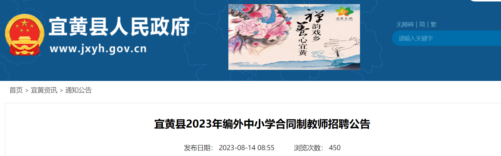 2023江西撫州市宜黃縣編外中小學(xué)合同制教師招聘140人,報名開始時間:2023年8月13日上午9:00起。現(xiàn)將招聘公告原文發(fā)布如下: