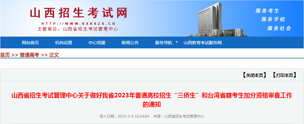 原文標(biāo)題:山西省招生考試管理中心關(guān)于做好我省2023年普通高校招生“三僑生”和臺(tái)灣省籍考生加分資格審查工作的通知