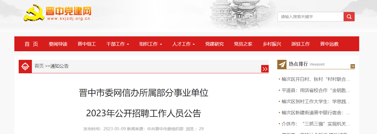 2023年山西省晉中市委網(wǎng)信辦所屬部分事業(yè)單位招聘2人。報(bào)名時(shí)間:2023年5月18日9:00至5月22日17:00?,F(xiàn)將公告原文發(fā)布如下: