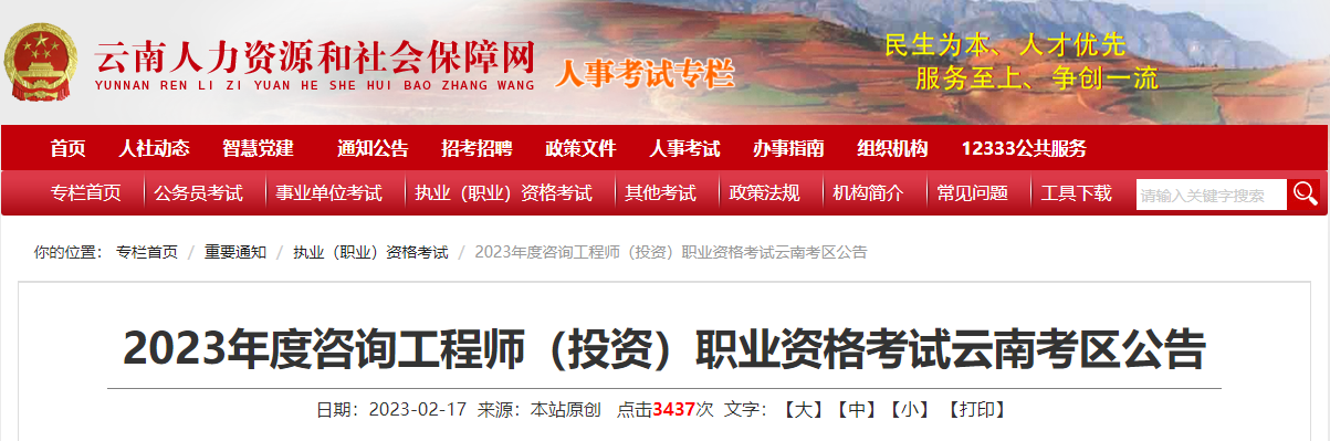 從云南省人力資源和社會(huì)保障網(wǎng)獲悉,《2023年云南咨詢工程師(投資)職業(yè)資格考試報(bào)名通知》現(xiàn)已公布,報(bào)名時(shí)間:2月24日-3月3日,考試時(shí)間:4月8日-9日,更多事宜請(qǐng)參考閱讀《考務(wù)通知》,官方公告原文如下: