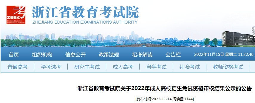 原文標(biāo)題:浙江省教育考試院關(guān)于2022年成人高校招生免試資格審核結(jié)果公示的公告
