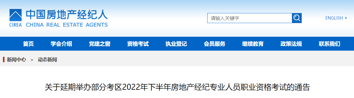 原文標(biāo)題:關(guān)于延期舉辦部分考區(qū)2022年下半年房地產(chǎn)經(jīng)紀(jì)專業(yè)人員職業(yè)資格考試的通告