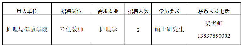 提示:招聘工作中具體事宜,請應(yīng)聘人員隨時(shí)關(guān)注我校人事處網(wǎng)站公布的相關(guān)信息(若本人不及時(shí)閱讀相關(guān)信息,造成后果,責(zé)任自負(fù))。按學(xué)校要求攜帶本人身份證、學(xué)歷、學(xué)位證書原件等相關(guān)材料參加招聘。