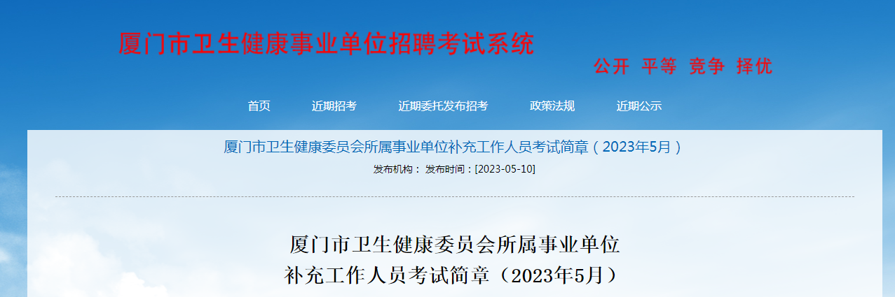 原文標(biāo)題:廈門市衛(wèi)生健康委員會(huì)所屬事業(yè)單位補(bǔ)充工作人員考試簡(jiǎn)章(2023年5月)