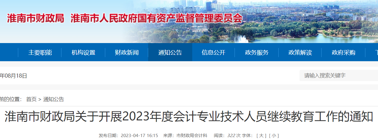 小編根據(jù)淮南市財政局發(fā)布“淮南市財政局關(guān)于開展2023年度會計專業(yè)技術(shù)人員繼續(xù)教育工作的通知”得知,2023年安徽淮南會計繼續(xù)教育時間為5月1日起,未完成2022年度繼續(xù)教育的學(xué)員,可于2023年12月31日前,參加網(wǎng)絡(luò)繼續(xù)教育進(jìn)行補(bǔ)學(xué)。