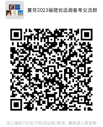 (請報名的同學(xué)通過微信掃碼進(jìn)入2023福建選調(diào)生交流群。二維碼失效后可通過搜索“fdupengpeng”添加微信號,并備注“姓名-院系-學(xué)號-福建選調(diào)生”及時入群)。